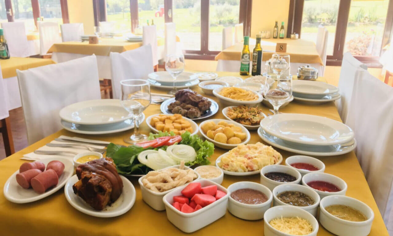 E assim o restaurante Paradouro retorna às suas origens trazendo consigo seu tradicional cardápio: assados de porco, grelhados, rodízios de carnes nobres e o famoso Einsbein (joelho de porco). Os tradicionais bolinhos de batata feitos na hora, são acompanhados das geleias preparadas artesanalmente/ou geleias caseiras, e um buffet com deliciosas sobremesas completam nosso serviço.